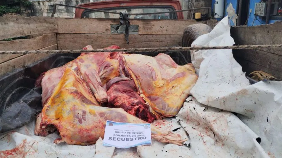 Durante el operativo, los efectivos detectaron que en la caja de una camioneta se transportaban 300 kilos de carne vacuna que no cumplía con las medidas de higiene y salubridad necesarias para su consumo. La carne carecía de refrigeración adecuada y presentaba signos de deterioro.