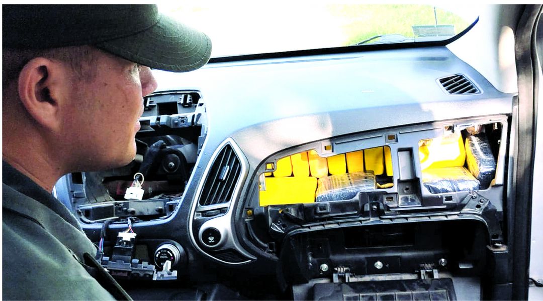 Al realizar el control físico del vehículo, los efectivos constataron anomalías en el interior del rodado, por lo que efectuaron una requisa más exhaustiva con uso de herramientas. Allí, el personal de la Fuerza descubrió 70 “ladrillos”, que contenían una sustancia blancuzca, dentro de comportamientos ubicados en el torpedo y en los laterales del mismo.