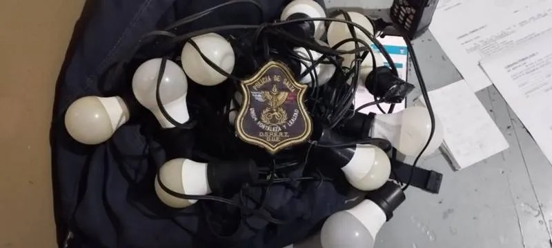 En el lugar identificaron a los sospechosos, dos hombres de 35 y 31 años, dando cuenta del cacheo superficial, que uno de ellos llevaba una mochila y en su interior una guirnalda de nueve metros de largo, elemento que había sido sustraído de inmediaciones.