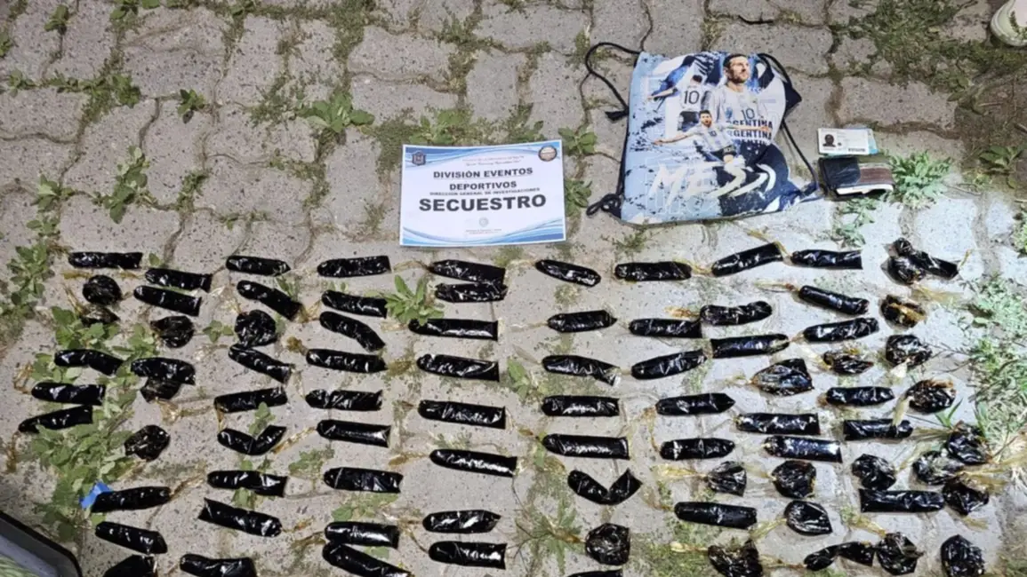 Durante el cacheo, los agentes encontraron entre las pertenencias de las dos mujeres -de 21 y 29 años- varias bolsitas de polietileno con sustancia etílica, identificada como fernet. Las tres personas fueron trasladadas a la base del estadio para su identificación formal y conteo del material.