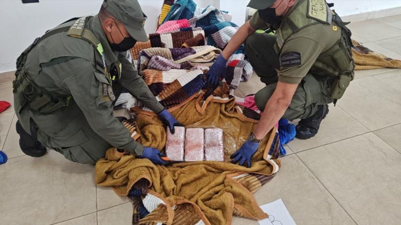 Una mujer mayor de edad fue aprehendida por efectivos de gendarmería luego de ser identificada como la dueña de los 49 ladrillos hallados escondidos entre colchas en el colectivo.