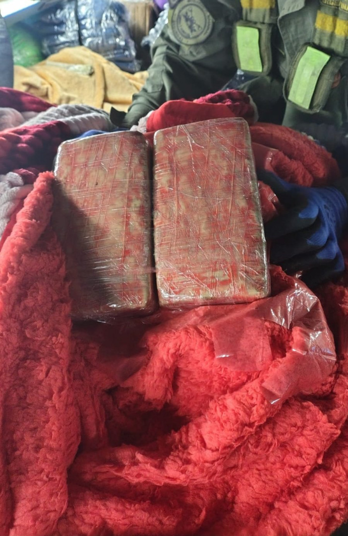 Tras analizar la documentación se procedió a inspeccionar la mercadería, que estaba desplegada en el segundo piso del ómnibus, detallaron los gendarmes. Allí, detectaron bultos fabricados con mantas y acolchados, lo que llamó la atención de los inspectores