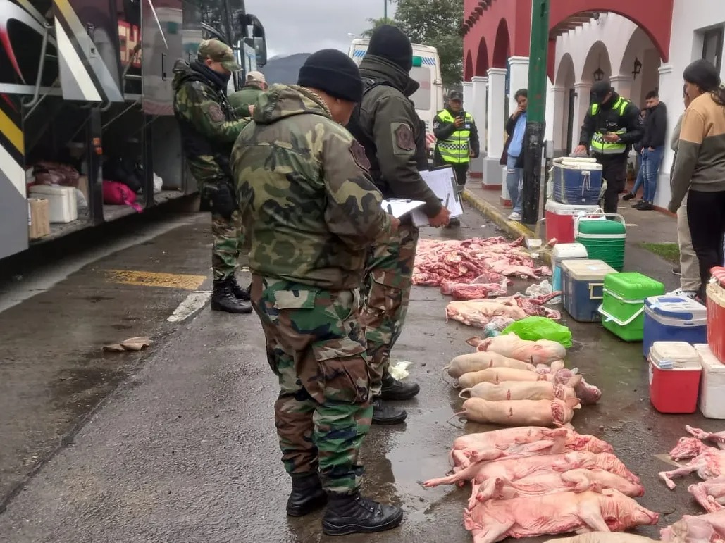 Ocurrió en un control en Ruta Nacional N° 9 en Capital, donde tras fiscalizar el colectivo hallaron carne porcina y caprina sin respetar las medidas de higiene exigible.