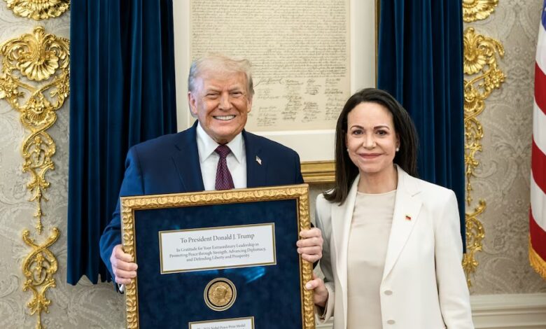 La líder opositora venezolana entregó el reconocimiento al presidente de Estados Unidos como gesto político y de gratitud por su rol en la transición democrática de Venezuela.