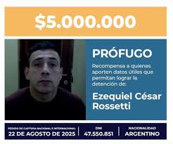 El Ministerio de Seguridad Nacional dispuso una recompensa de $5 millones para quienes aporten información que permita detener a Ezequiel César Rossetti, condenado por narcotráfico y actualmente prófugo de la Justicia.