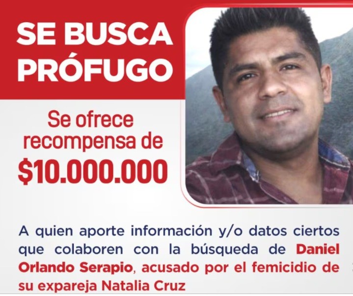 La fiscal penal de la Unidad de Femicidios, María Luján Sodero Calvet, informó que en el marco de las gestiones realizadas por la Procuración General ante las autoridades provinciales, el gobernador de Salta, Gustavo Sáenz, dispuso el otorgamiento de una recompensa de diez millones de pesos para quien aporte datos ciertos que permitan la ubicación y detención de Daniel Orlando Serapio, acusado del femicidio de Natalia Cruz.