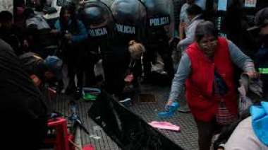 Efectivos de Infantería avanzaron por la 9 de Julio y reprimieron la protesta. “Estamos movilizados por los cientos, millones que tienen hambre hoy en la Argentina, por los desocupados y jubilados que tienen hambre”, aseguró Juan Carlos Alderete, co