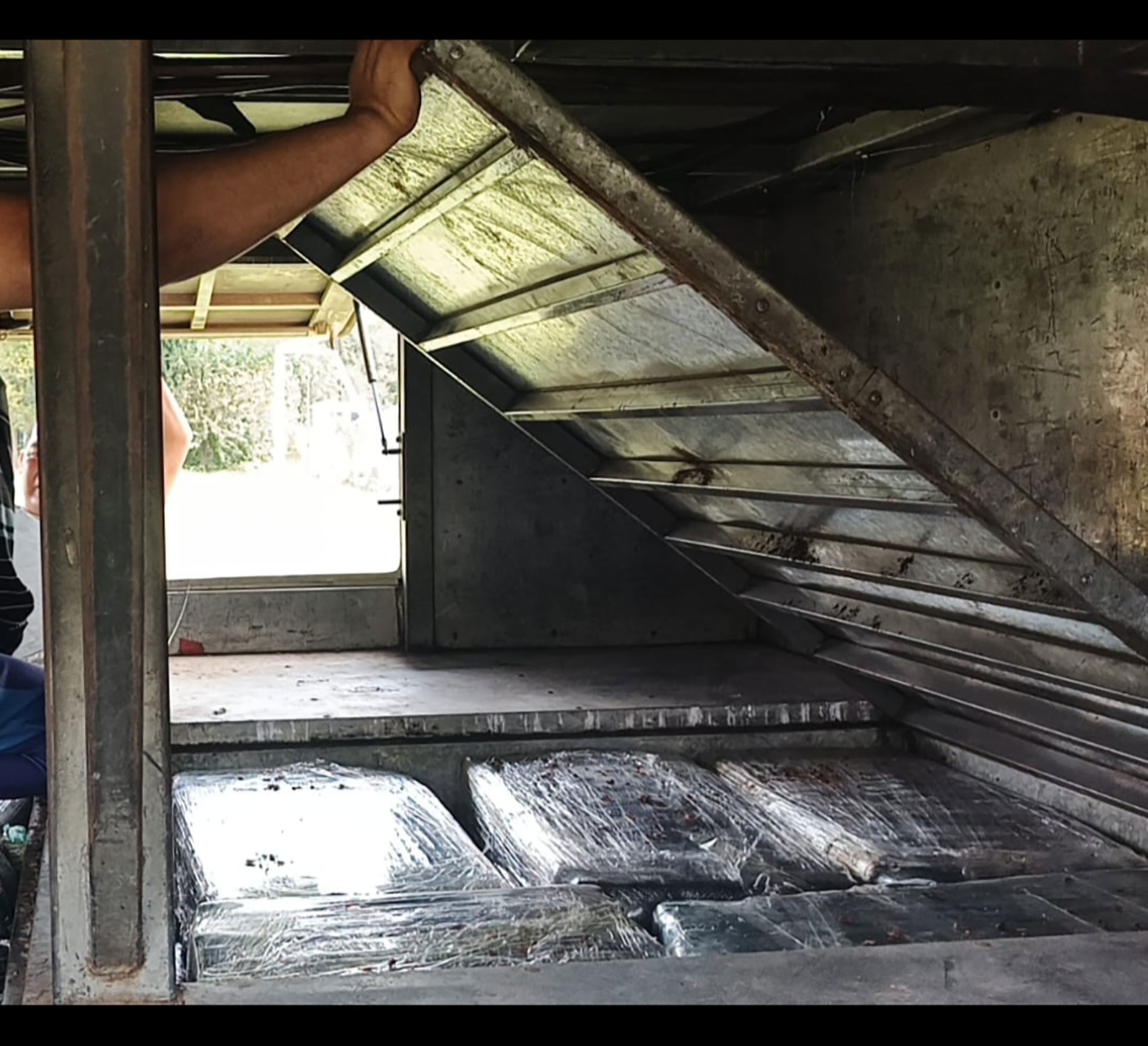 En paralelo, durante la inspección del micro, los efectivos descubrieron 280 kilos de hojas de coca en estado natural ocultos en un doble fondo de la bodega, además de 112 bultos con mercadería de origen extranjero.