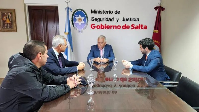 El ministro de Seguridad y Justicia, Marcelo Ramón Domínguez, se reunió con el subsecretario de Lucha contra el Narcotráfico del Ministerio de Seguridad de la Nación, Ignacio Cichello, el director Nacional de Investigaciones Criminales contra el Narcotráfico, Raúl Contreras, y el coordinador regional del Grupo de Operaciones Conjuntas del Noroeste Argentino, Antonio Serrano, para avanzar en acciones concretas que potencien la capacidad operativa del GOC NOA.