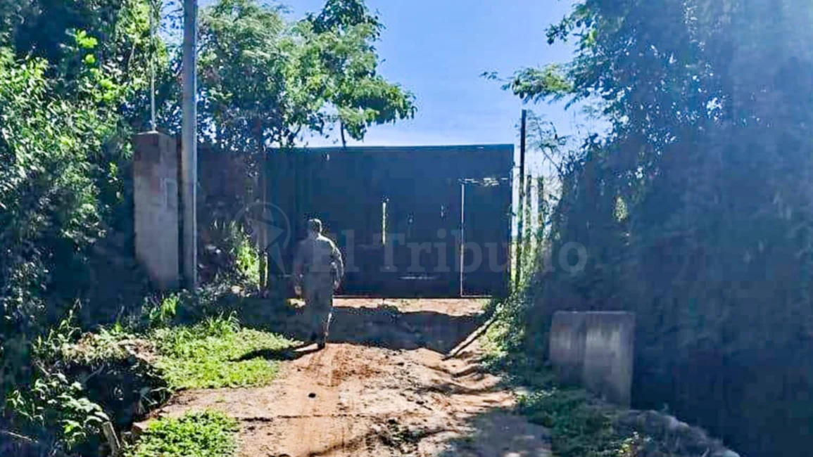 Un portón de hierro pintado de negro, asegurado con candado en medio del monte genera sorpresa entre quienes no entienden este sin sentido.