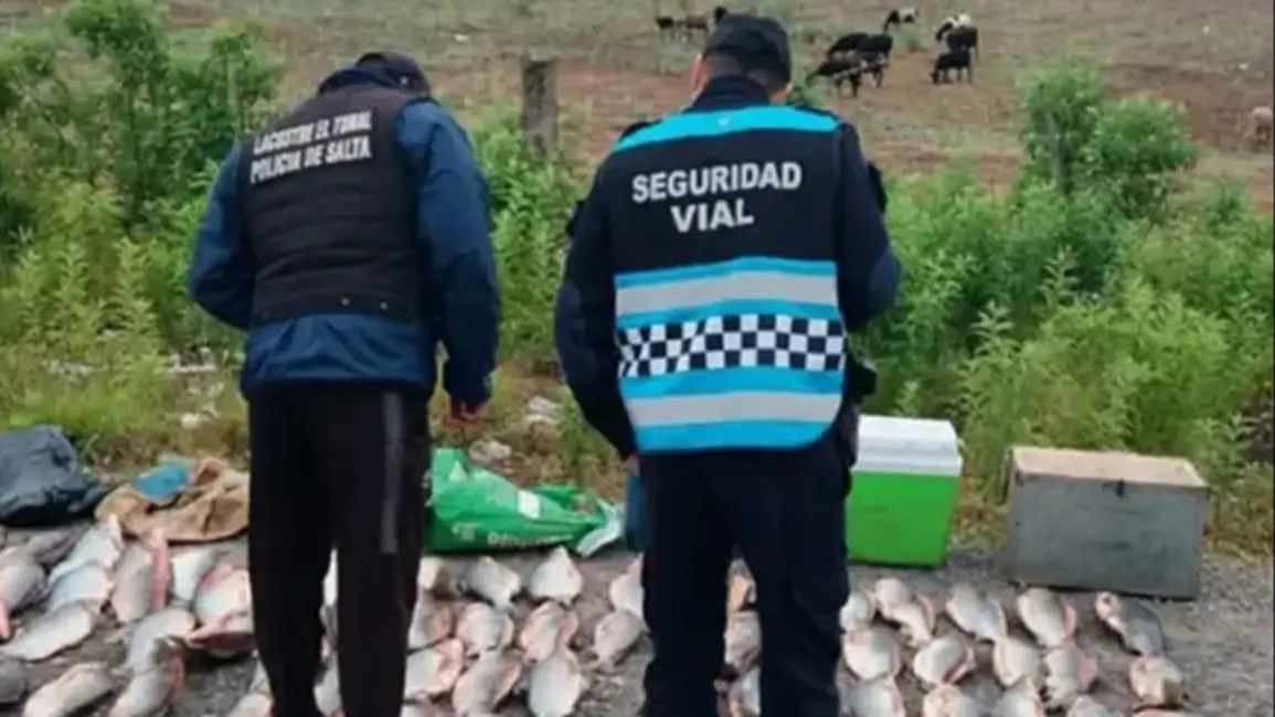 Poco después, a alrededor de las 9, la Vial de Lumbreras detuvo la marcha del rodado y demoró a sus ocupantes. Con la presencia de testigos civiles hicieron una requisa del automóvil y en el baúl observaron que transportaban conservadoras y bolsas que contenían 71 sábalos, que al parecer habrían sido adquiridos en El Galpón a redeadores y los trasladaban con fines comerciales.