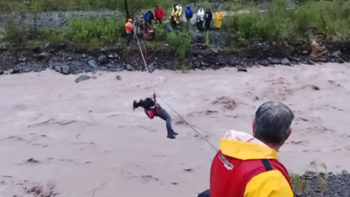 Uno de los operativos de mayor magnitud se desarrolló en Campo Quijano, donde 31 personas que realizaban senderismo en el paraje Corralito debieron ser rescatadas tras ser sorprendidas por la repentina crecida del río Puyil el domingo. El intenso procedimiento demandó la intervención de personal de Defensa Civil, el Grupo de Rescate Montaña Salta, Bomberos de la Policía y efectivos de la comisaría de la jurisdicción. En Vaqueros, en tanto, dos personas fueron puestas en resguardo por personal policial luego de quedar atrapadas en el cauce del río, en inmediaciones del puente de la localidad.
