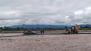 Según manifestaron los turistas, oriundos de Posadas, en cuestión de minutos, el nivel del agua subió. Por ello, el ripio cedió bajo las ruedas y el vehículo quedó varado, con riesgo real de ser arrastrado por la corriente.