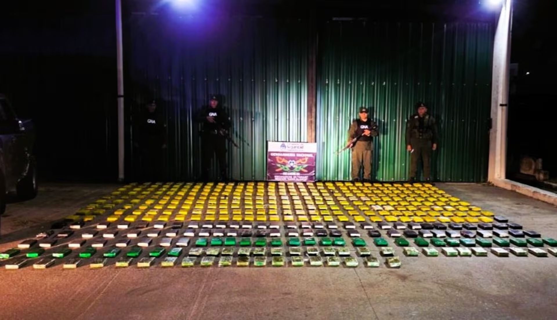 “Eran 19 personas que cargaban bultos, mientras que otros cinco o seis individuos iban armados y hacían de custodios de la carga”, explicó la fiscalía en la audiencia.