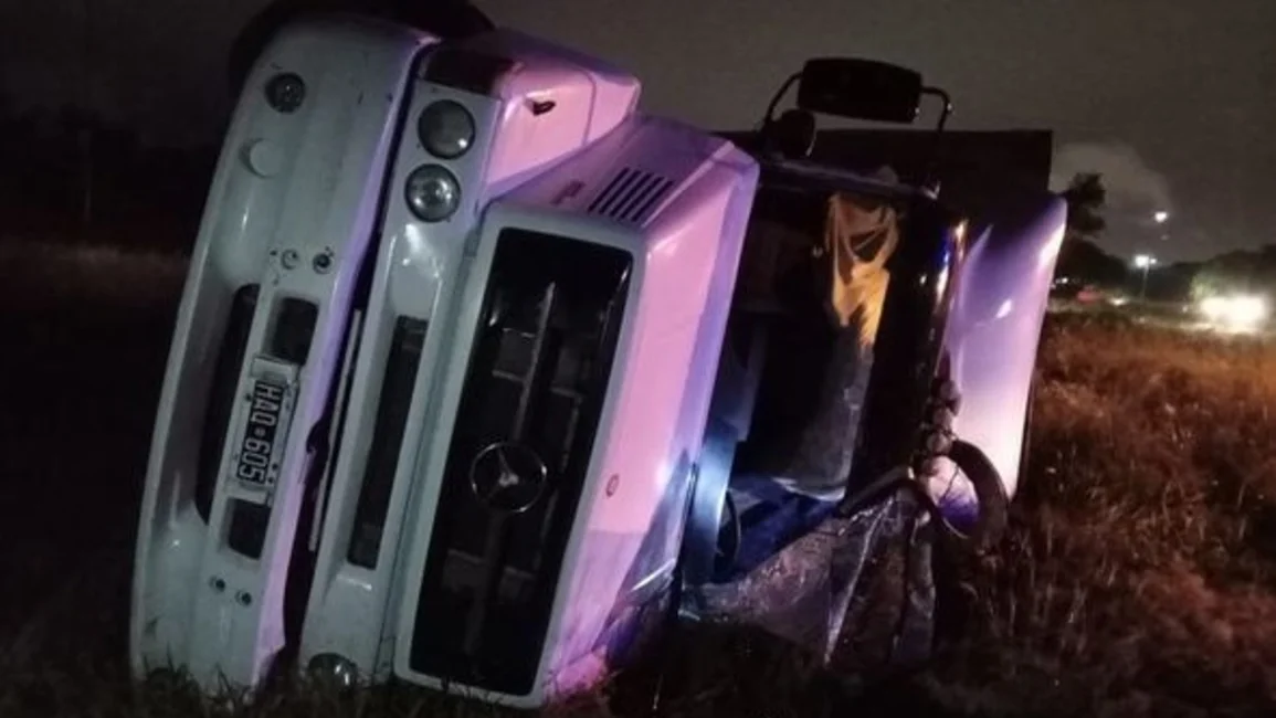 Un equipo de Bomberos Voluntarios fue despachado al lugar donde encontraron un camión Mercedes Benz térmico, viajando en dirección Norte-Sur (de regreso de la localidad de Aguas Blancas hacia Pichanal), volcado en la ruta.